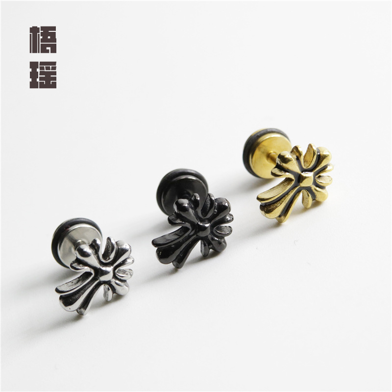 PS145 European and American retro titanium steel cross old men's earrings fashion earrings cross-border wholesale