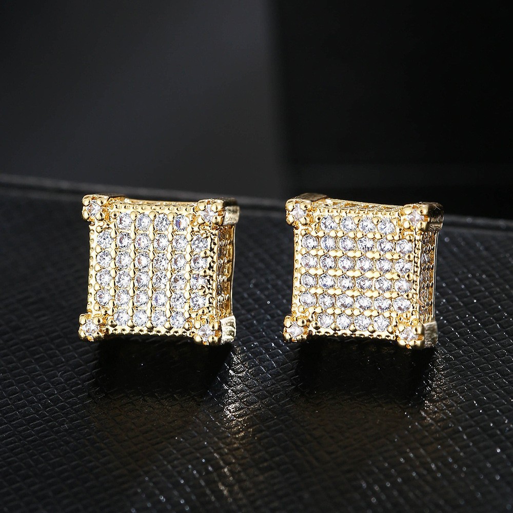 European and American Hot Hip Hop Full Zircon Micro Earrings Men's Trendy Gold Plated Hiphop Earrings Cross-border New Jewelry