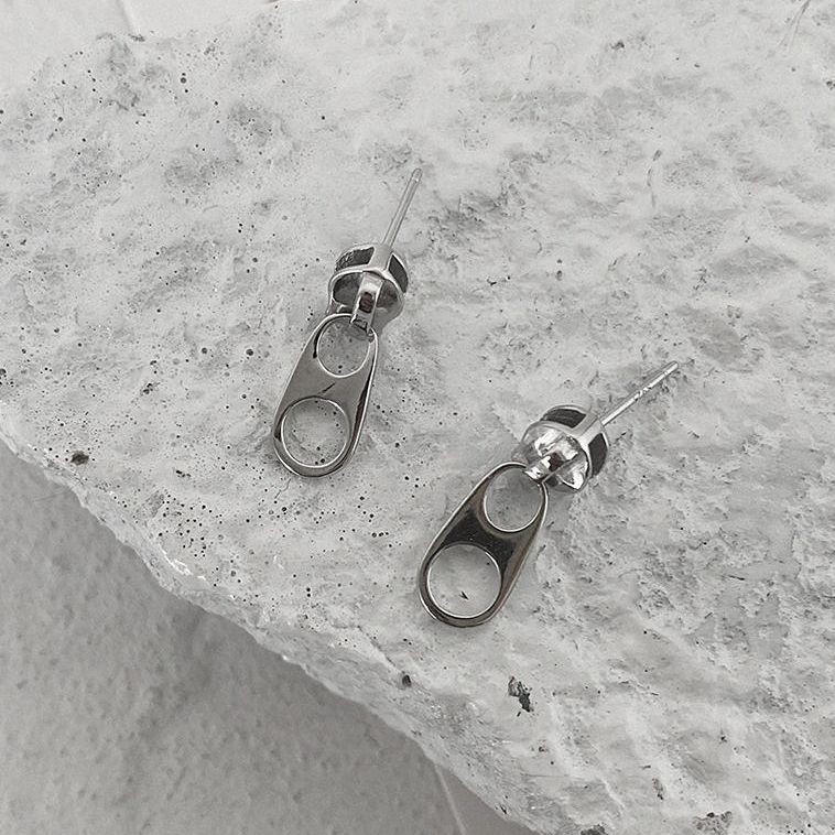 Zipper buckle earrings trendy men's and women's personalized simple light luxury niche design earrings creative high-grade zipper head earrings