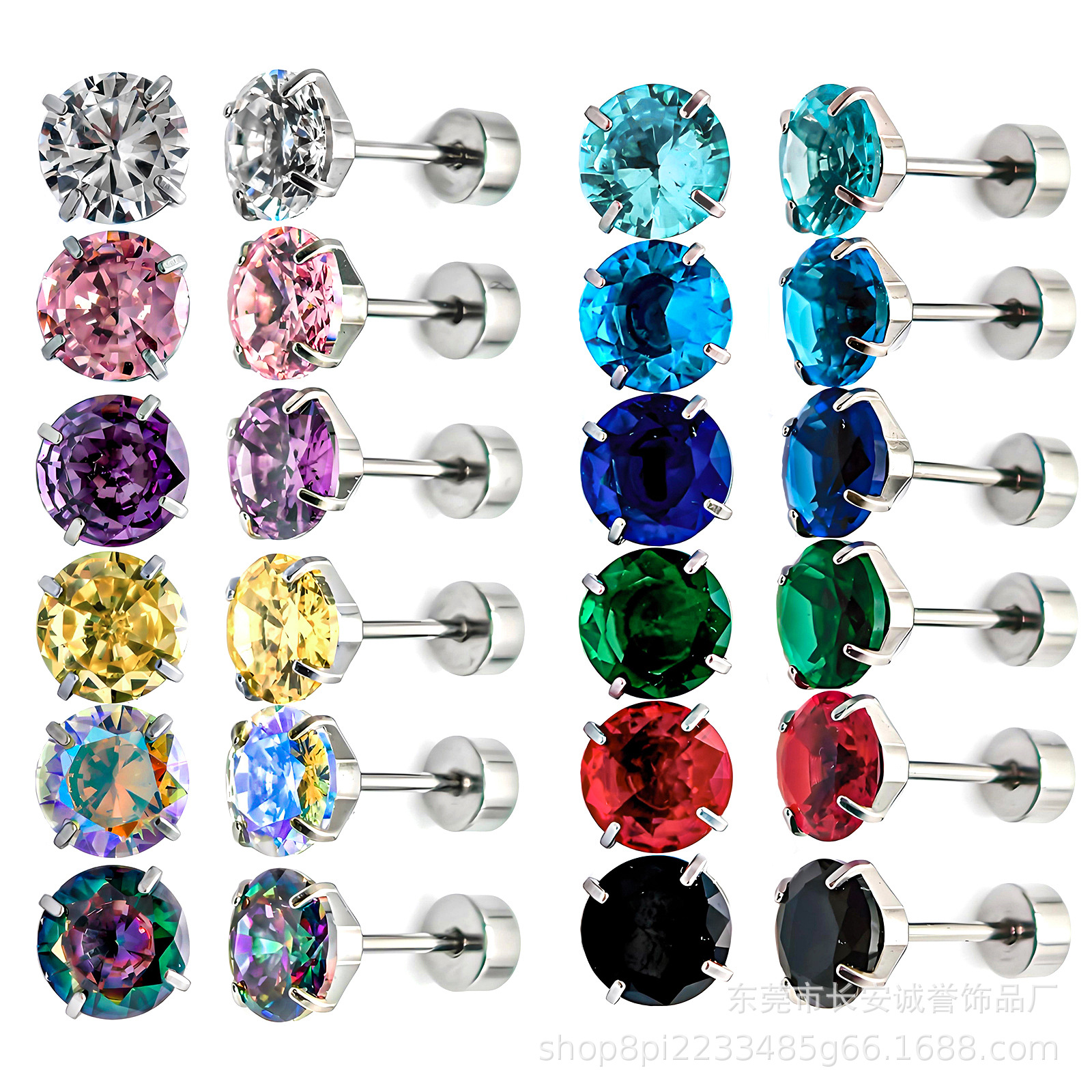European and American Cross-Border Round Zircon Earrings Geometric Diamond-Encrusted Titanium Steel Stainless Steel Earrings for Women and Men Ear Bone Nail Earrings Jewelry