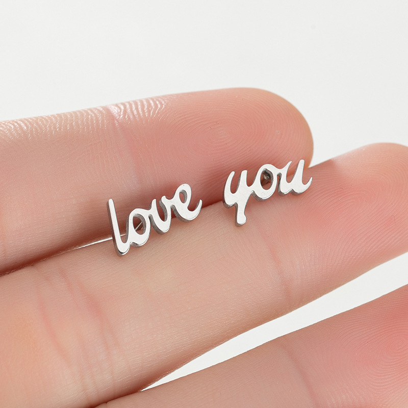 Japanese and korean style asymmetric LOVE YOU stud earrings women's stainless steel new personalized men's and women's couple letter earrings
