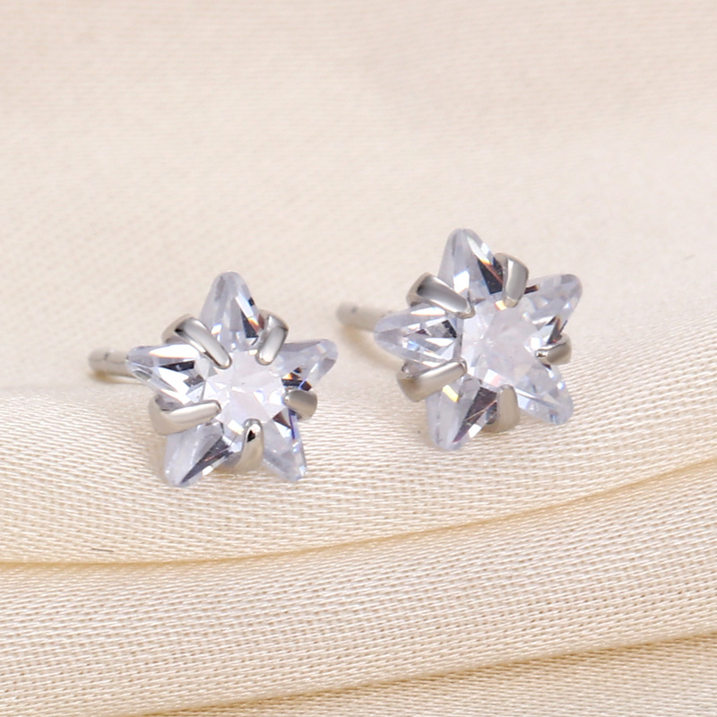 Contract S925 Silver Five-Pointed Star Zircon Earrings Korean Style Fashionable Men's and Women's Diamond Earrings Star Earrings Cross-Border