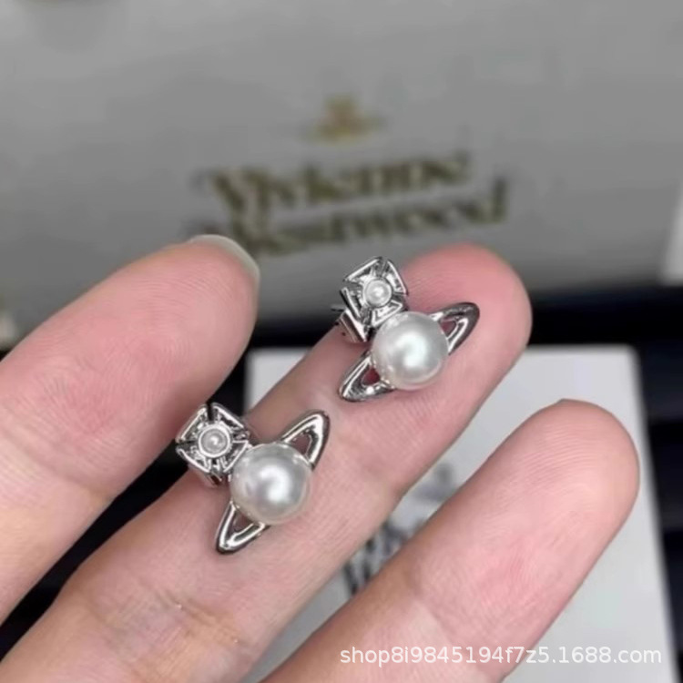 Western Empress Dowager Vivian Mini Four-claw Small Pearl Earrings for Men and Women Distinctive Ear Bone Earrings