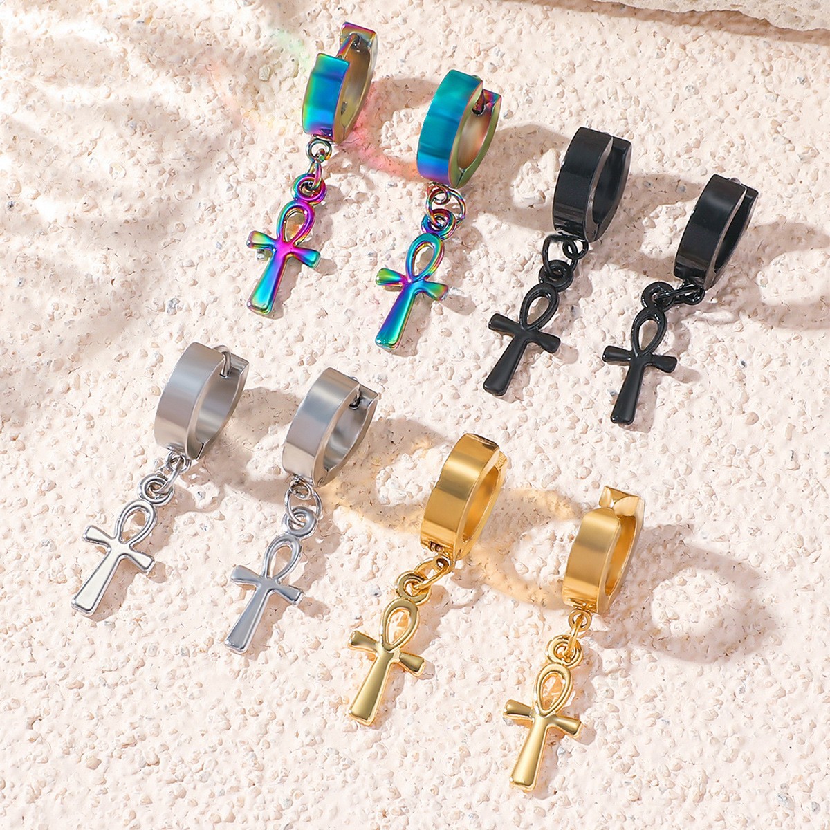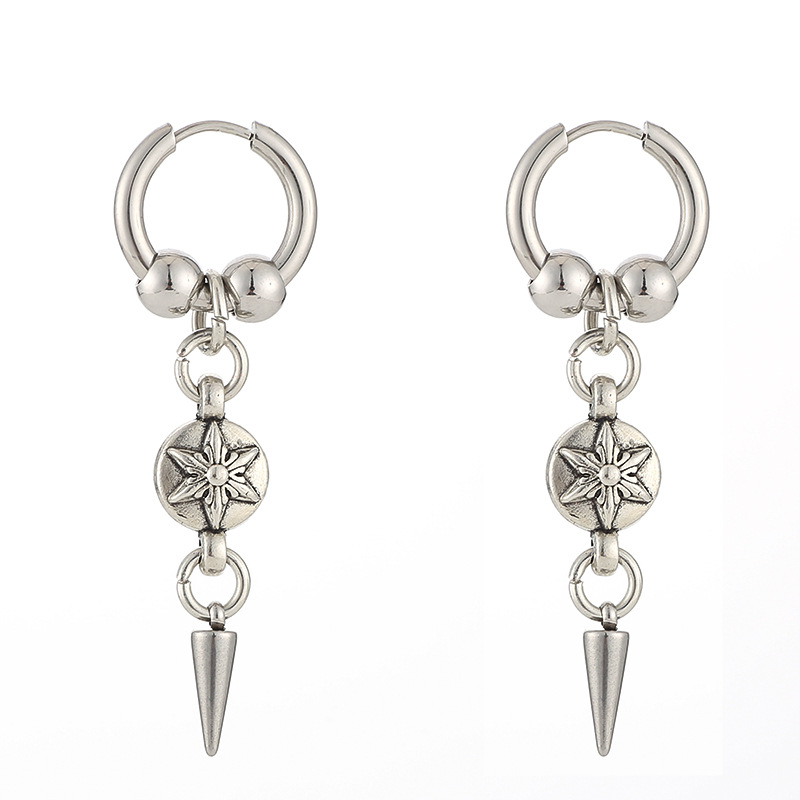 Cross-Border Popular Stainless Steel Men's Earrings High-End Punk Hip-Hop Personality Talent Pendant Earrings Wholesale