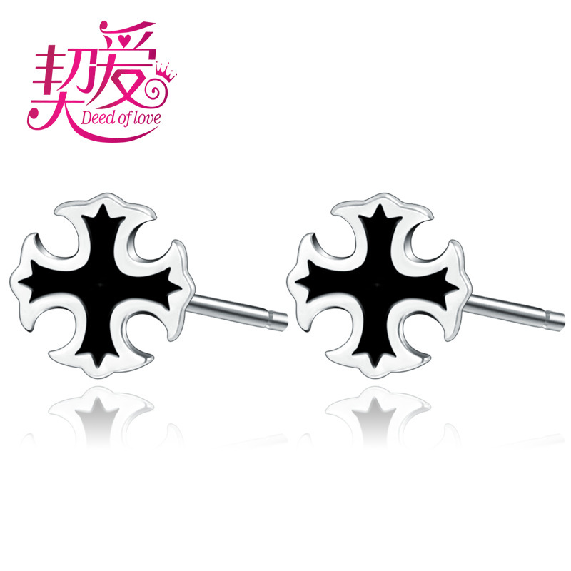 Deai Accessories S925 Silver Korean Style Men's and Women's Trendy Cross Earrings European and American Fashion Ear Jewelry Cross Border