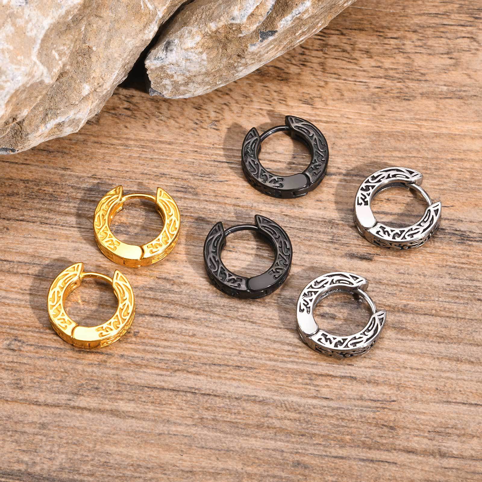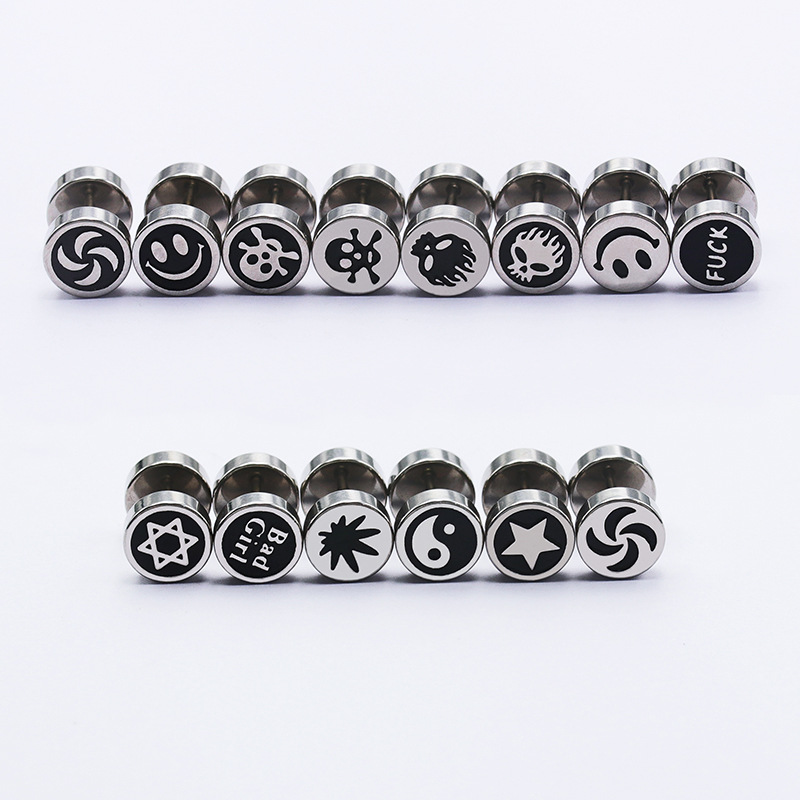 Personality men's stainless steel pattern earring steel earrings retro hip-hop spring creek EH-699
