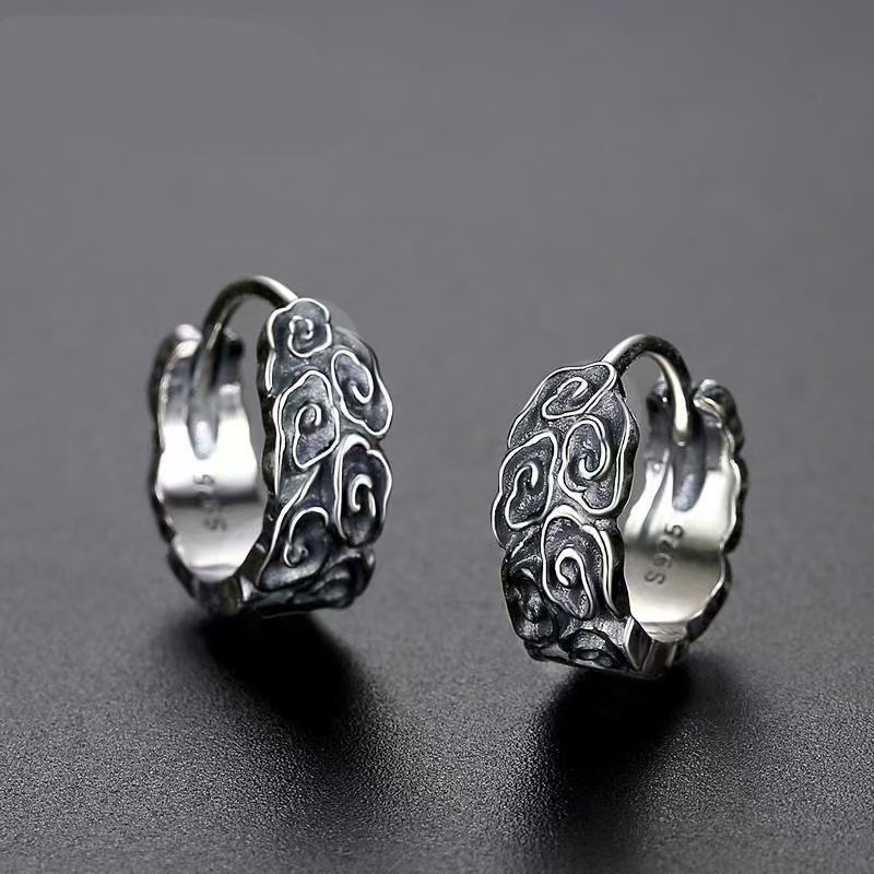Chinese Style Retro Distressed Xiangyun Pattern Earrings Men's and Women's Ear Buckle National Style Ear Earrings Trendy Personalized Trendy Earrings
