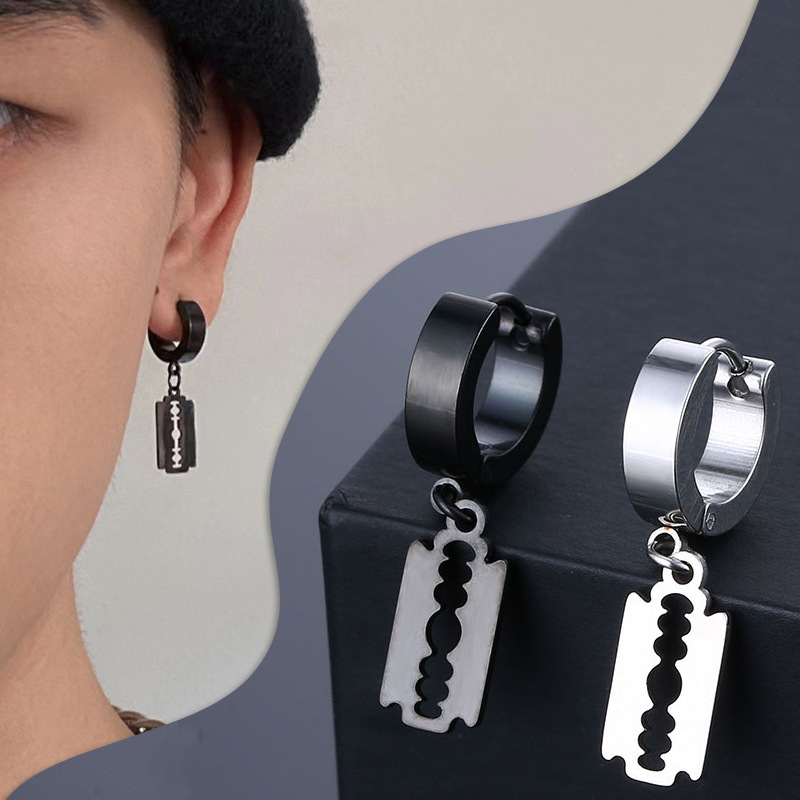 Stainless Steel Retro Blade Ear Buckle Titanium Steel Punk Personality Hip Hop Street Trendy Men's Ear Buckle Earrings Earrings Earrings
