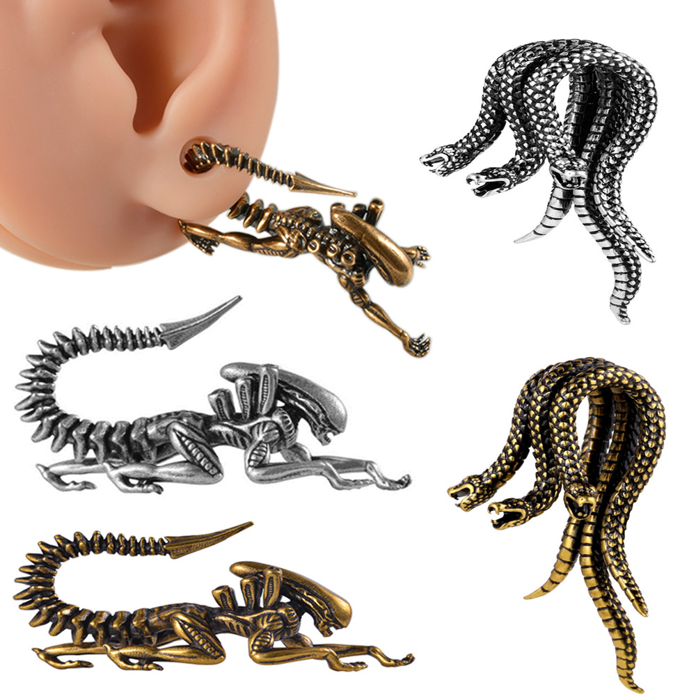 Cross-Border fashion retro shaped auricle three-head snake shaped dog heavy eardrops personality piercing copper ear hanging earrings