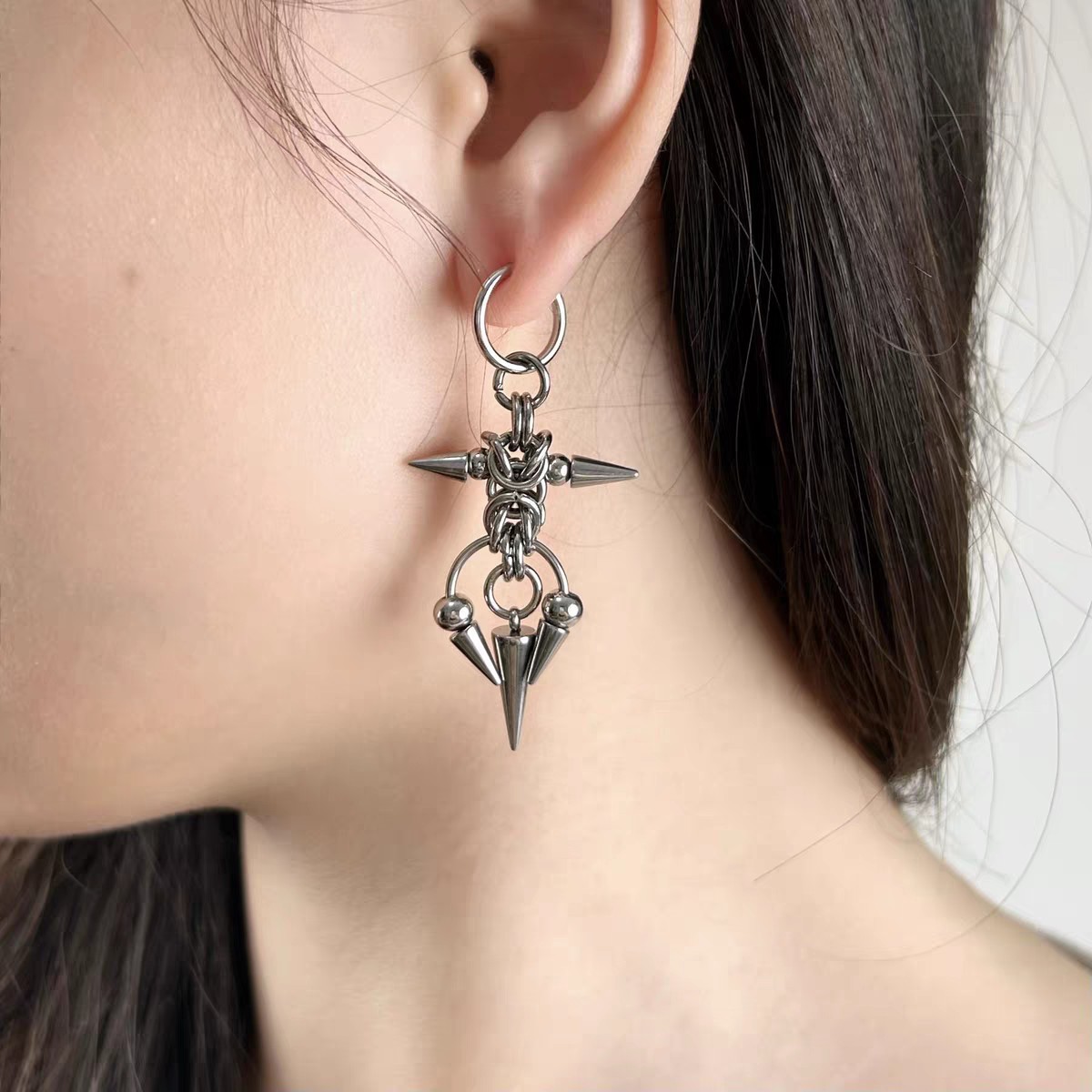 Original Niche Punk Heavy Earrings Yabi Style Thorn Horseshoe Earrings Men's and Women's Earrings