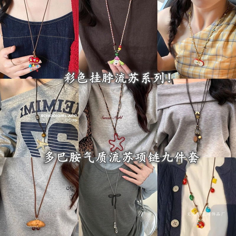 Dopamine Color Apple Braided Necklace Women's 2025 New Cute Long Halter Sweater Chain Pendant Accessories