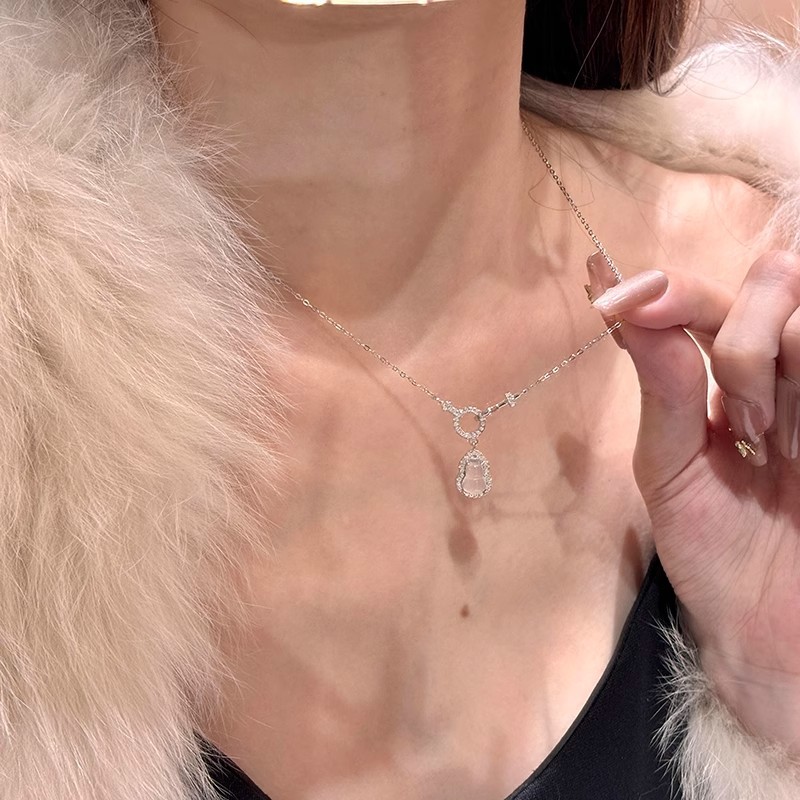 Titanium Steel Non-Fading New Chinese Style Zircon Gourd Necklace for Women, Simple Niche Fashion Clavicle Chain, Versatile and High-End