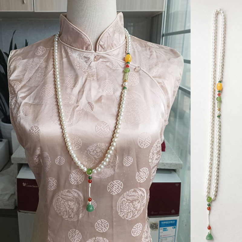 Pearl Necklace Long Woolen Chain Women's Style New Chinese Style Retro Original Chinese Style Ethnic Style Cheongsam Accessories