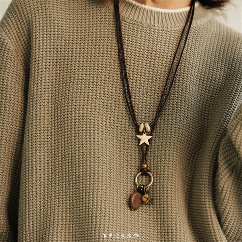 Acorn Forest Plant Dried Fruit Sweater Chain Long Ethnic Style Accessories Men and Women Hand-Woven Cotton and Linen Clothing Necklace