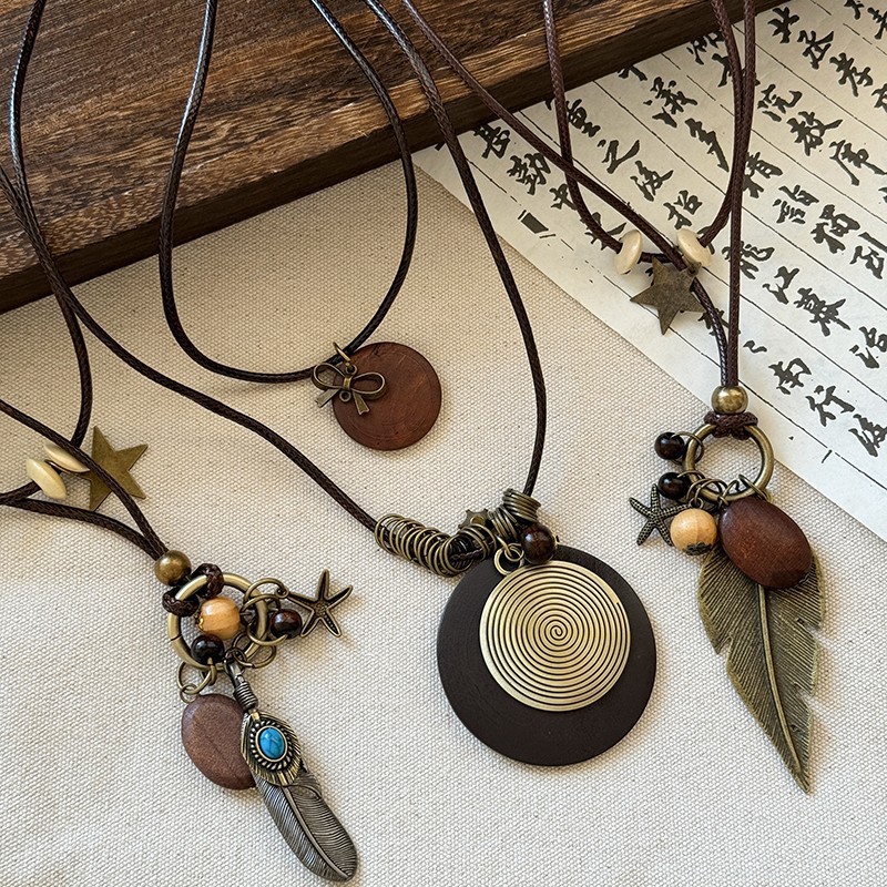 Zen Chinese Style New Chinese Retro Necklace Sweater Chain Bohemian Ethnic Style Niche Pendant Sweatshirt Chain Resin
