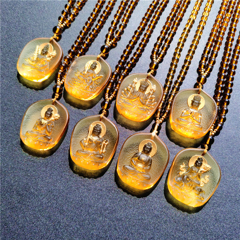 Gold-plated colored glaze eight patron Saint pendant Thousand-hand Guanyin twelve Zodiac Benmingfo brand Manjusri Bodhisattva pendant