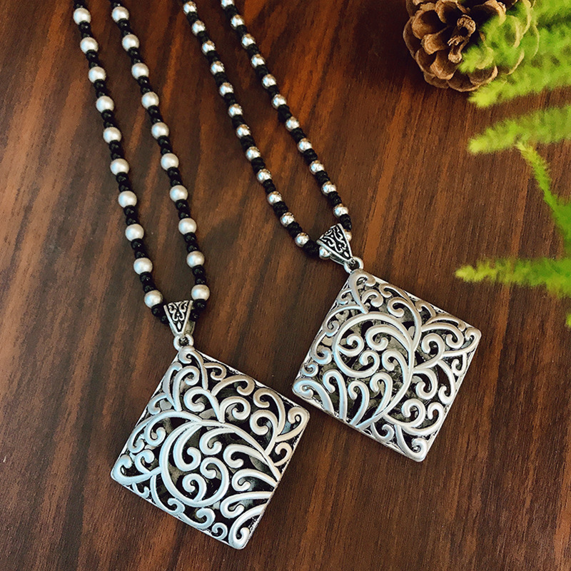 Literary Style Retro Elegant Xizang Silver Quartet Imitation Silver Woolen Chain Pendant Women's Long All-match Pendant Necklace