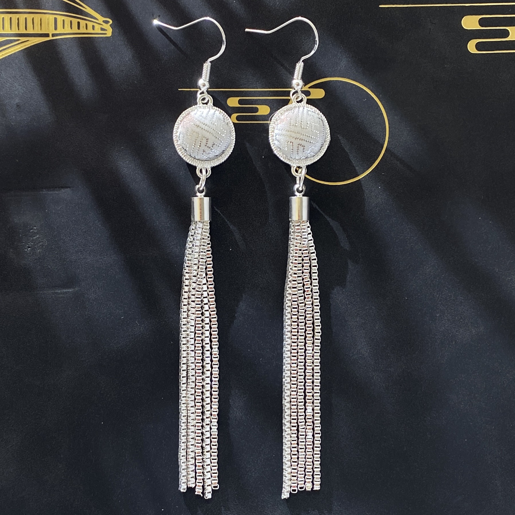 Mongolian Earrings Women's Characteristic Ethnic Style Short Tassel Earrings Mongolian Elements Imitation Silver [Fabric] Earrings