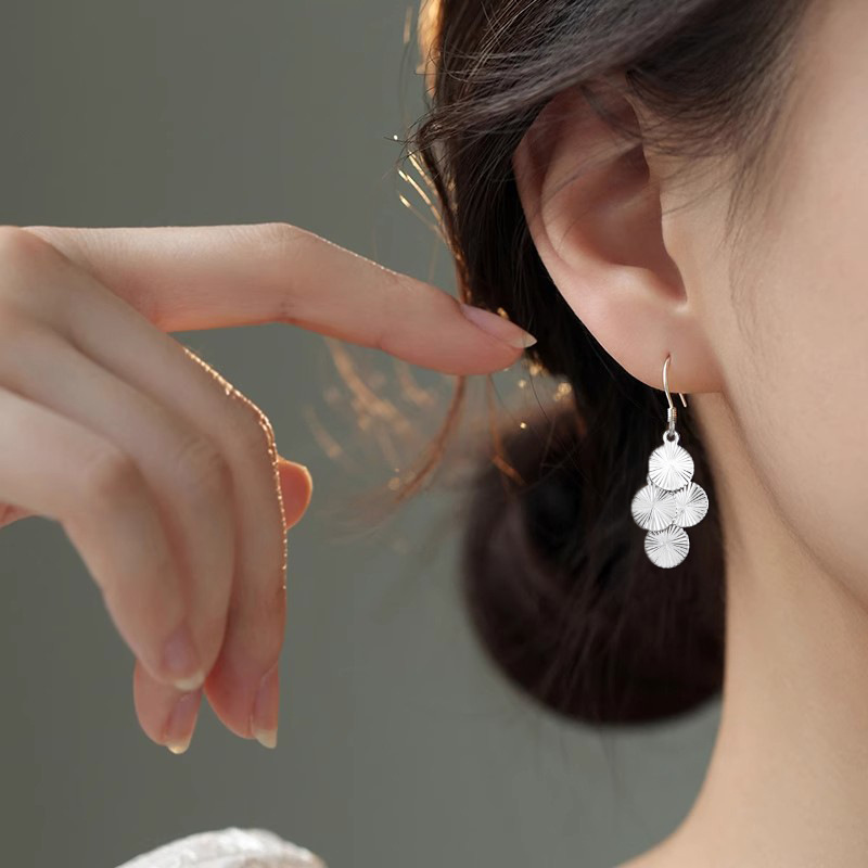 Carved Sequin Earrings with a National Trend and Ancient Charm, Tassel Windmill Earrings for Women, Featuring a Unique and Minimalist Ethnic Style with Round Ear Hooks