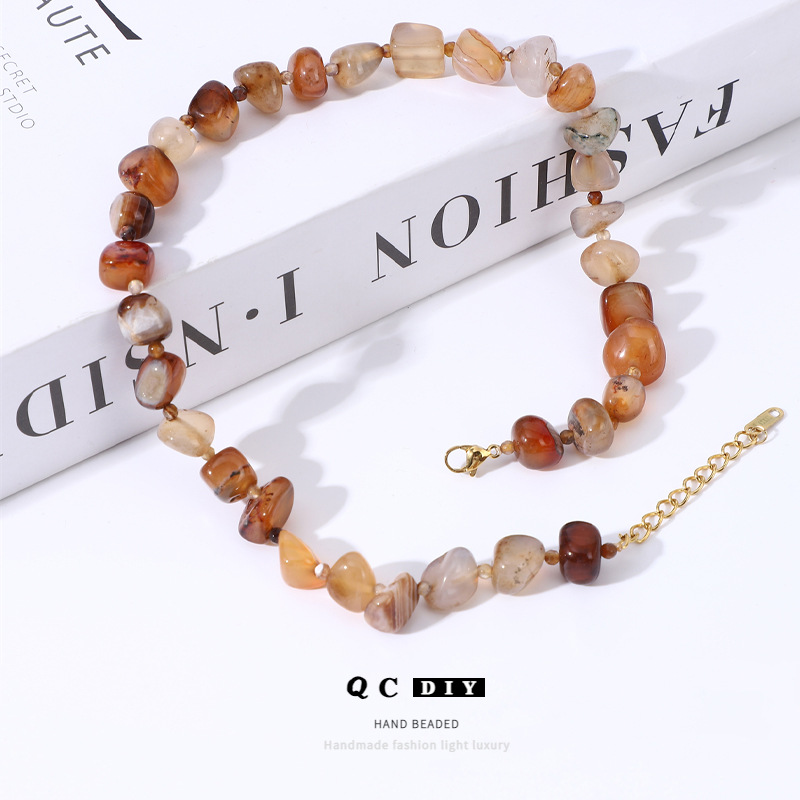 European and American Personality Exaggerated Natural Onyx Stone Beaded Necklace Women's All-match Light Luxury High-end Sense Niche Ethnic Style Necklace