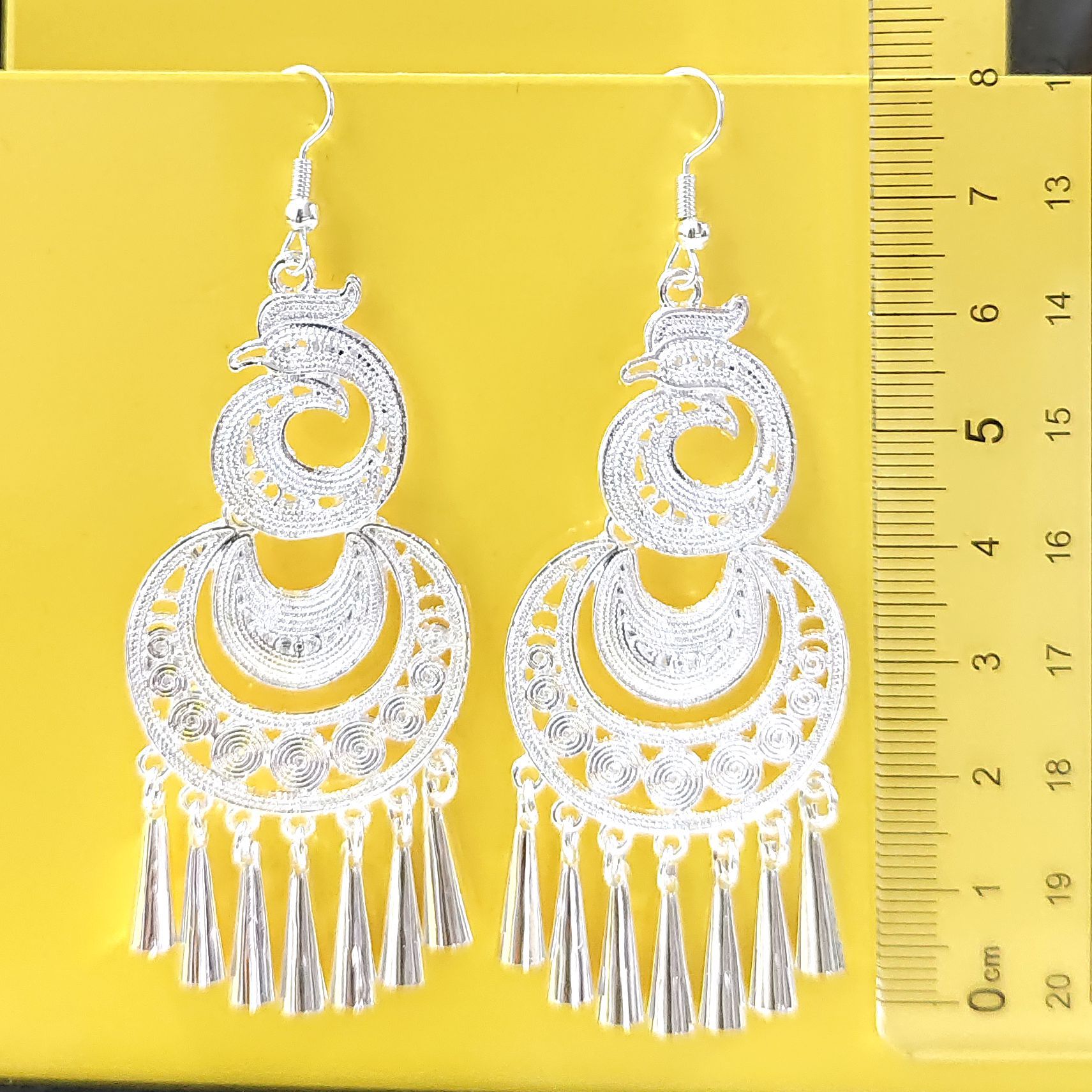 Minority Style Silver Jewelry Women's Peacock Earrings Tassel Earrings Imitation Silver Retro Ethnic Earrings Scenic Night Market