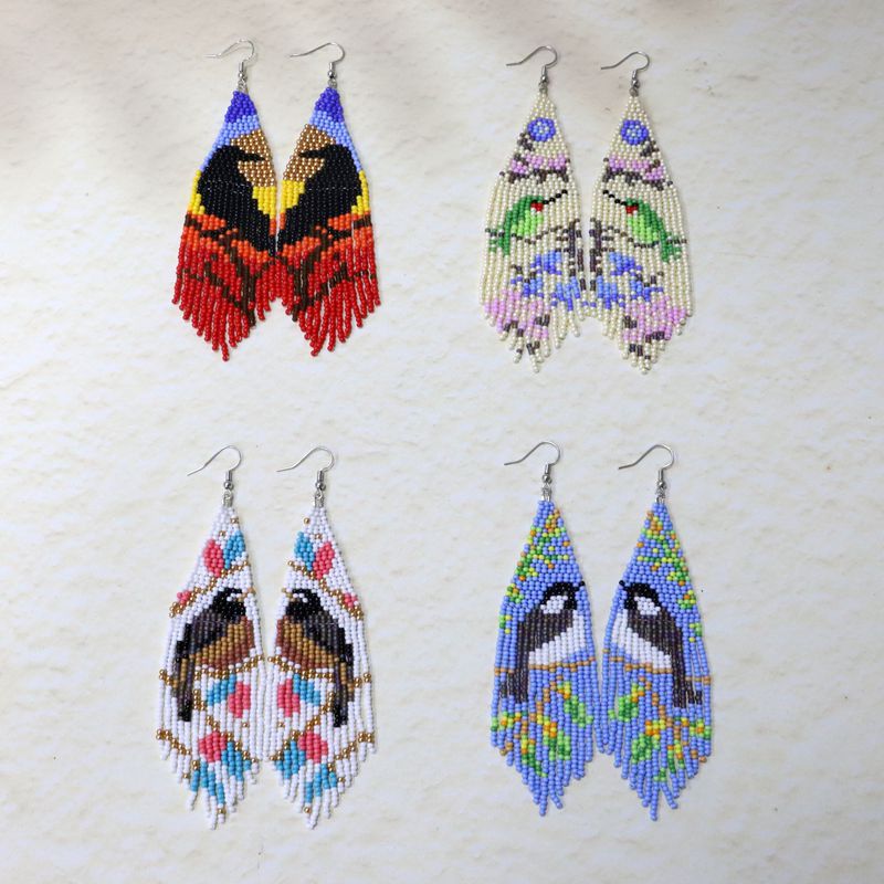 Bohemian Flower and Bird Beaded Tassel Earrings Ethnic Style Gradient Bird Niche Female European and American Personalized Earrings Wholesale