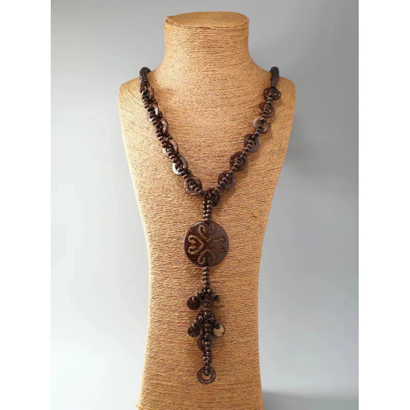 Travel Jewelry Exotic European and American Bohemian Ethnic Retro Coconut Shell Sweater Chain Long Necklace Wholesale Necklace