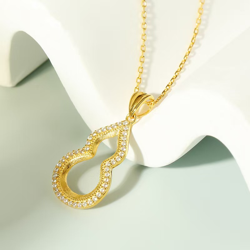 New Chinese Style Hollow Gourd Pendant for Women, New Style, Versatile, High-End, Diamond-Encrusted Laifu Necklace, Light Luxury Clavicle Chain
