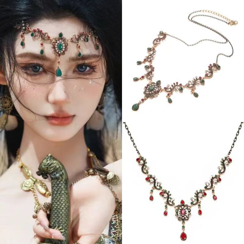 Cross-border Amazon necklace forehead decoration dual-purpose travel manufacturers wholesale generation of ethnic style eyebrow drop western antique