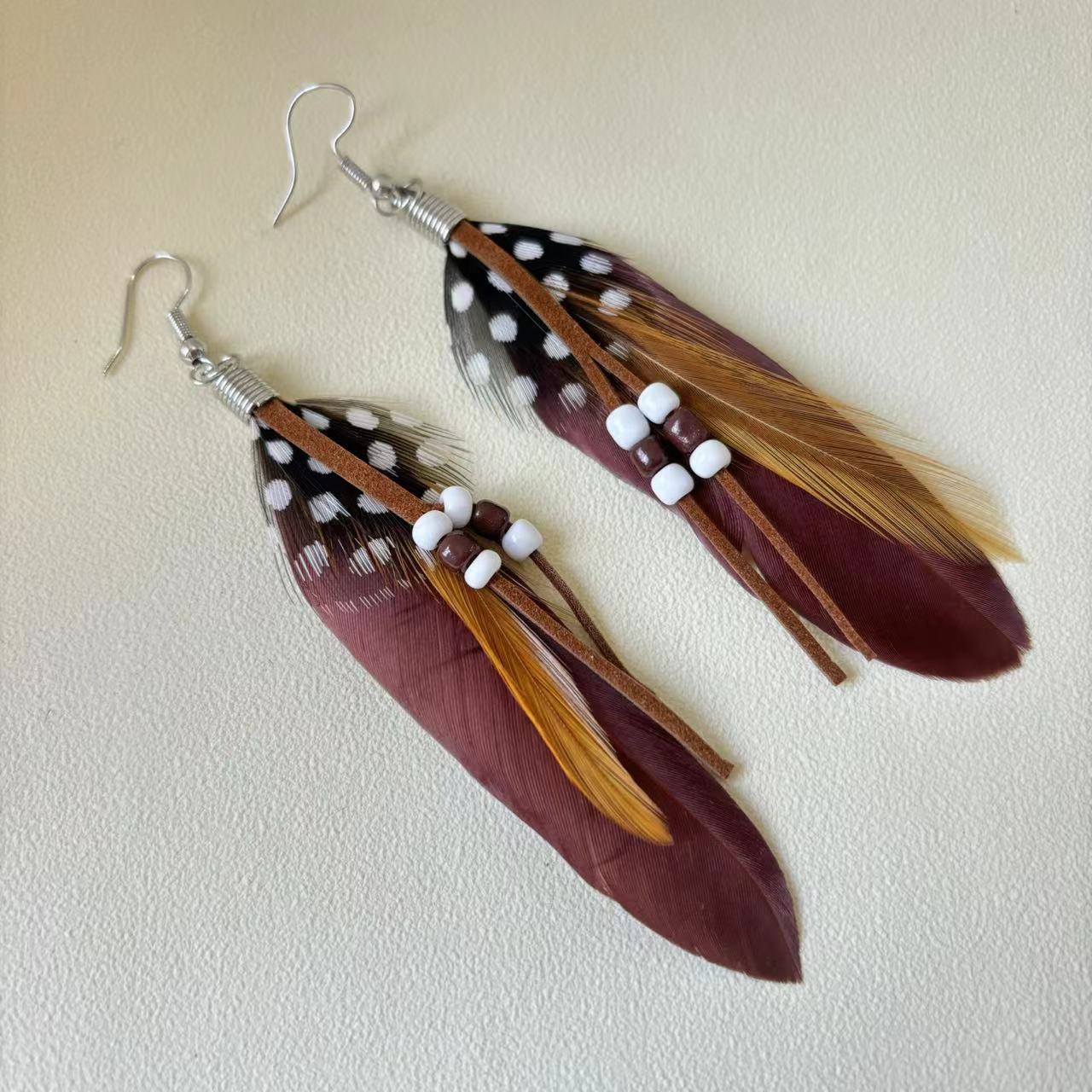 Cross-border Bohemian single wave point feather earrings fashion personality national style earrings national style earrings photo