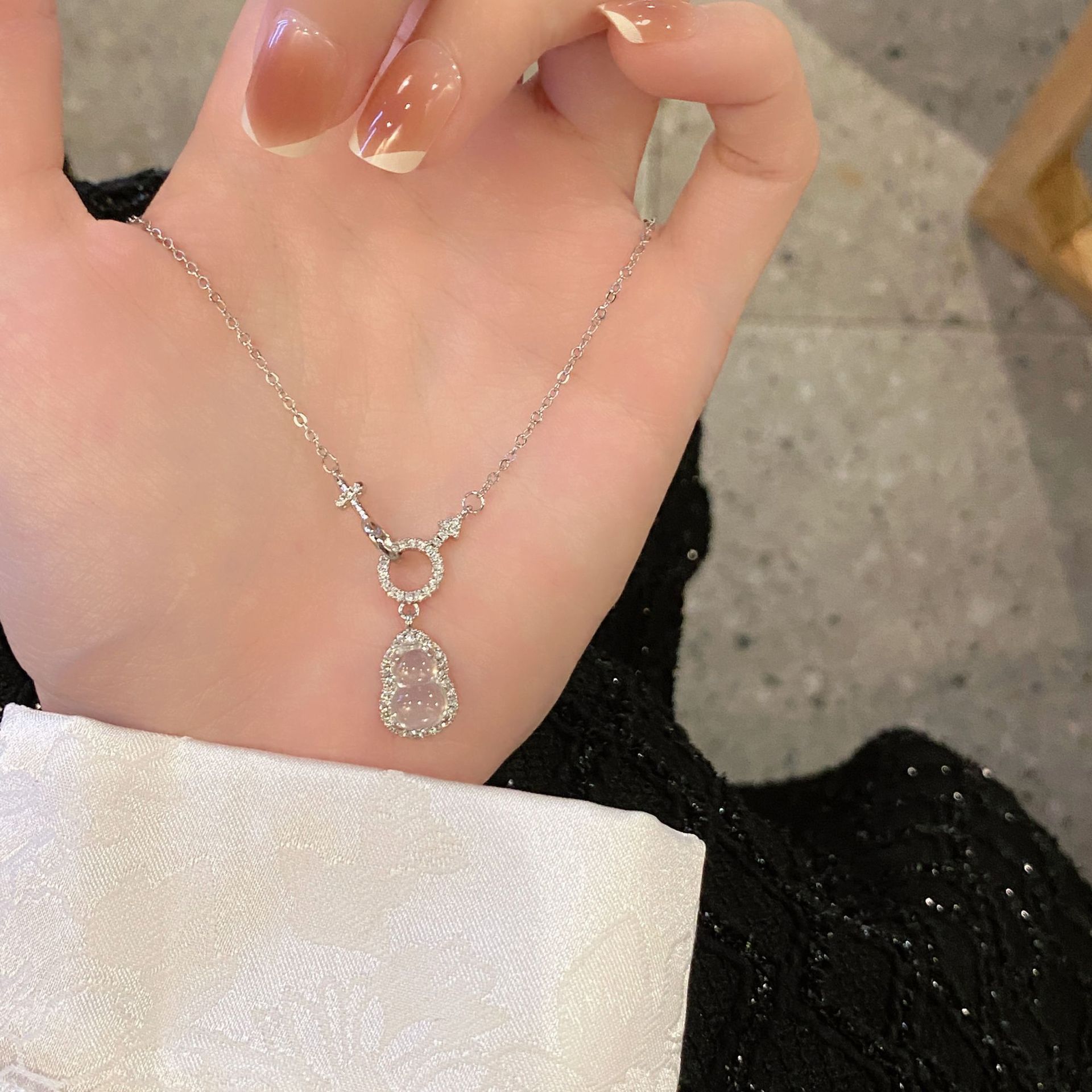 New Chinoiserie Ice Translucent Gourd Imitation Jade Necklace Retro Niche ins Classy Interlocking Zircon Clavicle Chain for Women