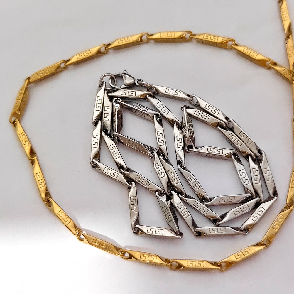 2024 New Korean Style Fashion Stick Necklace Melon Seed Chain Great Wall Pattern Cold Style All-match Unisex Decoration