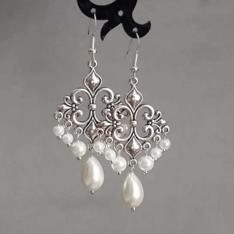 Cross-Border Exquisite Tassel Elegant Ethnic Style Retro Imitation Pearl Silver Stainless Steel Earrings Pendant Party Gift