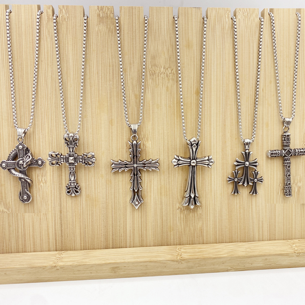 Titanium Steel Cross 70CM Long Necklace Pendant INS Explosive Neutral Pendant Retro Hip Hop Punk Style