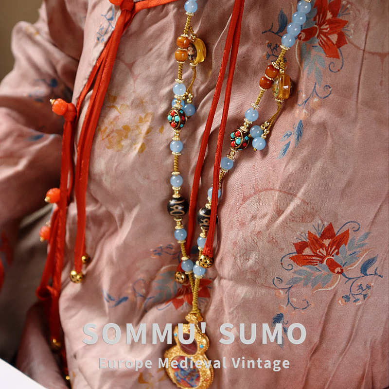 New Chinese Style Retro Round Brand Beaded Necklace Women's Horse Face Skirt Hanfu Cheongsam Woolen Chain Antique Ethnic Style Accessories