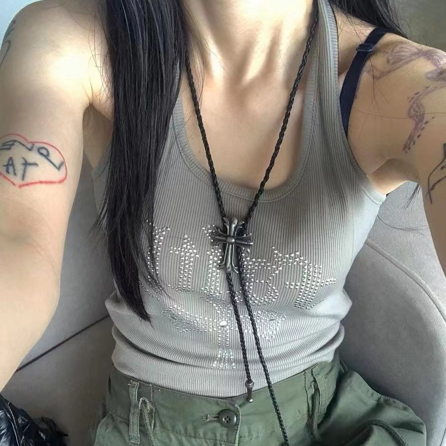 Vintage Spice Cross Black Rope Leather Woven Necklace Ethnic Style Crowe Personality Vintage One Rope Multi-use Waist Rope
