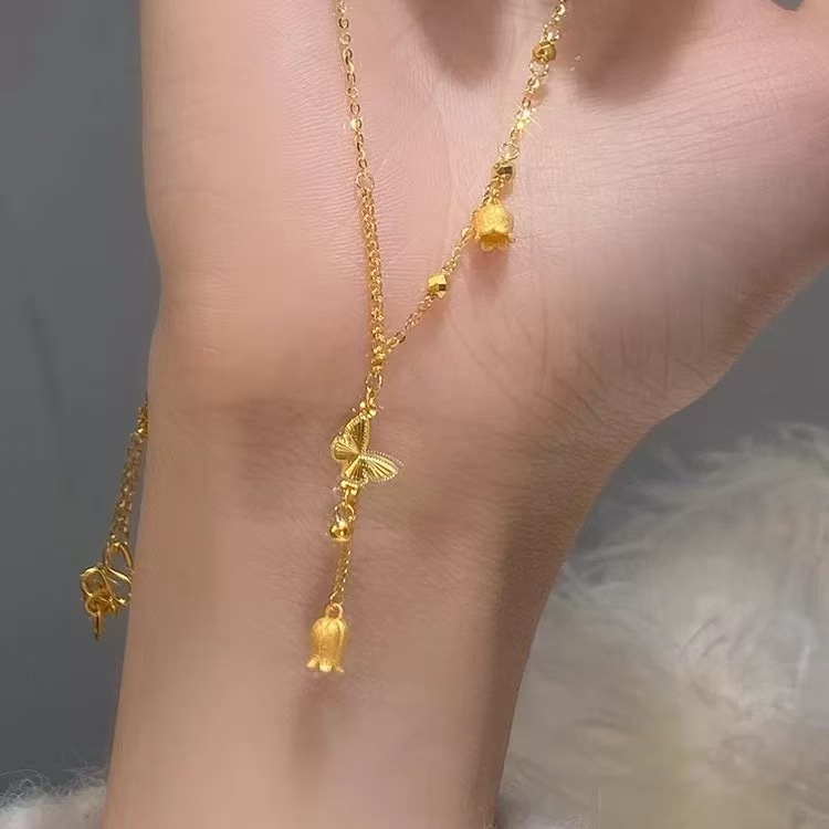 Sand Gold Tassel Butterfly Lily of the Valley Clavicle Chain Versatile Vietnamese Sand Gold Jewelry Long-Lasting Necklace Women's Light Luxury