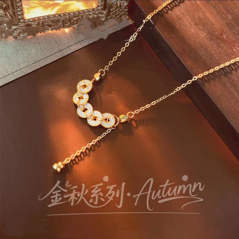 Five Emperors Coin Zircon Necklace Fashionable Temperament Coin National Trend New Chinese Style Y-Shaped Chain High-End Light Luxury Clavicle Chain