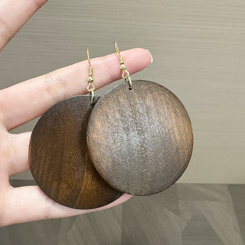 Ethnic Style Retro Brown Wooden Disc Earrings, Exaggerated and Atmospheric, Small New Earrings, Simple Design Pendants