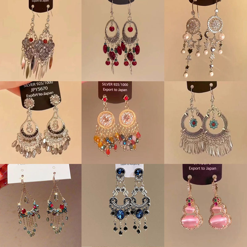 New Chinese Beaded Tassel Geometric Earrings Long Vintage Ethnic Fashion Sweet Butterfly Flower Earrings Light Luxury