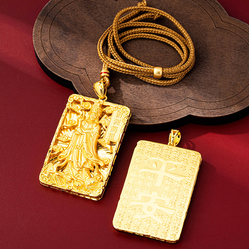 Popular Retro Meizhou Mazu Queen Square Necklace Women's Vietnamese Sand Gold Fortune Pendant Pendant Jewelry Direct Sales