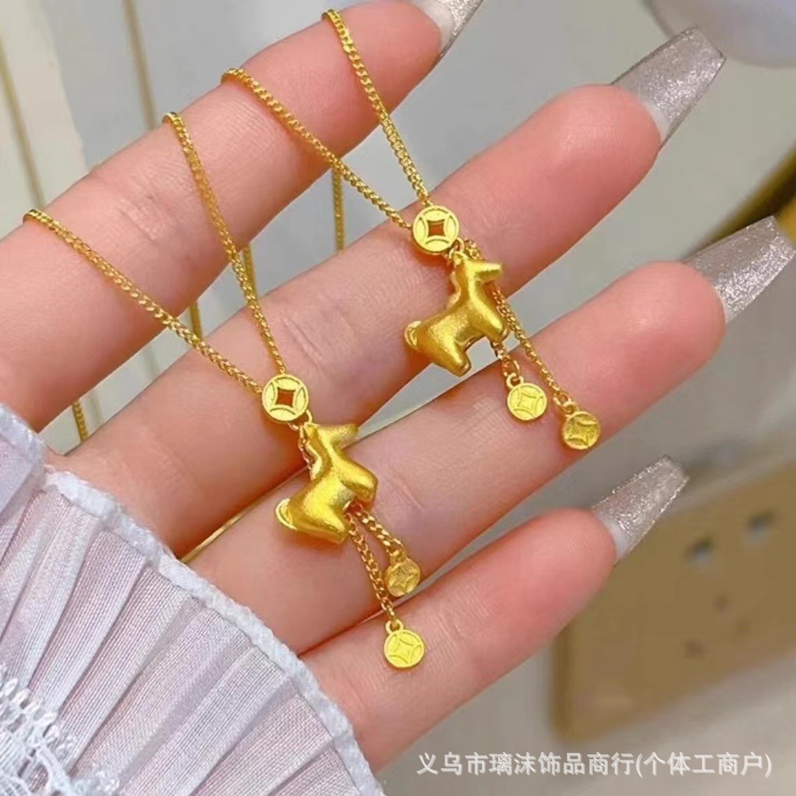 Zodiac Year of the Horse, Get Rich Immediately, Sparkling Pony Bead Pony Copper Coin Necklace, Feminine and Versatile Pony Bracelet, Fashionable