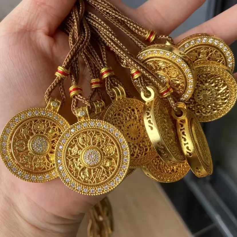 Real Gold Plated Strong Color-retaining Sand Gold Eight Treasure Compasses Necklace Rotatable Hollow-out Ancient Wool Chain Necklace