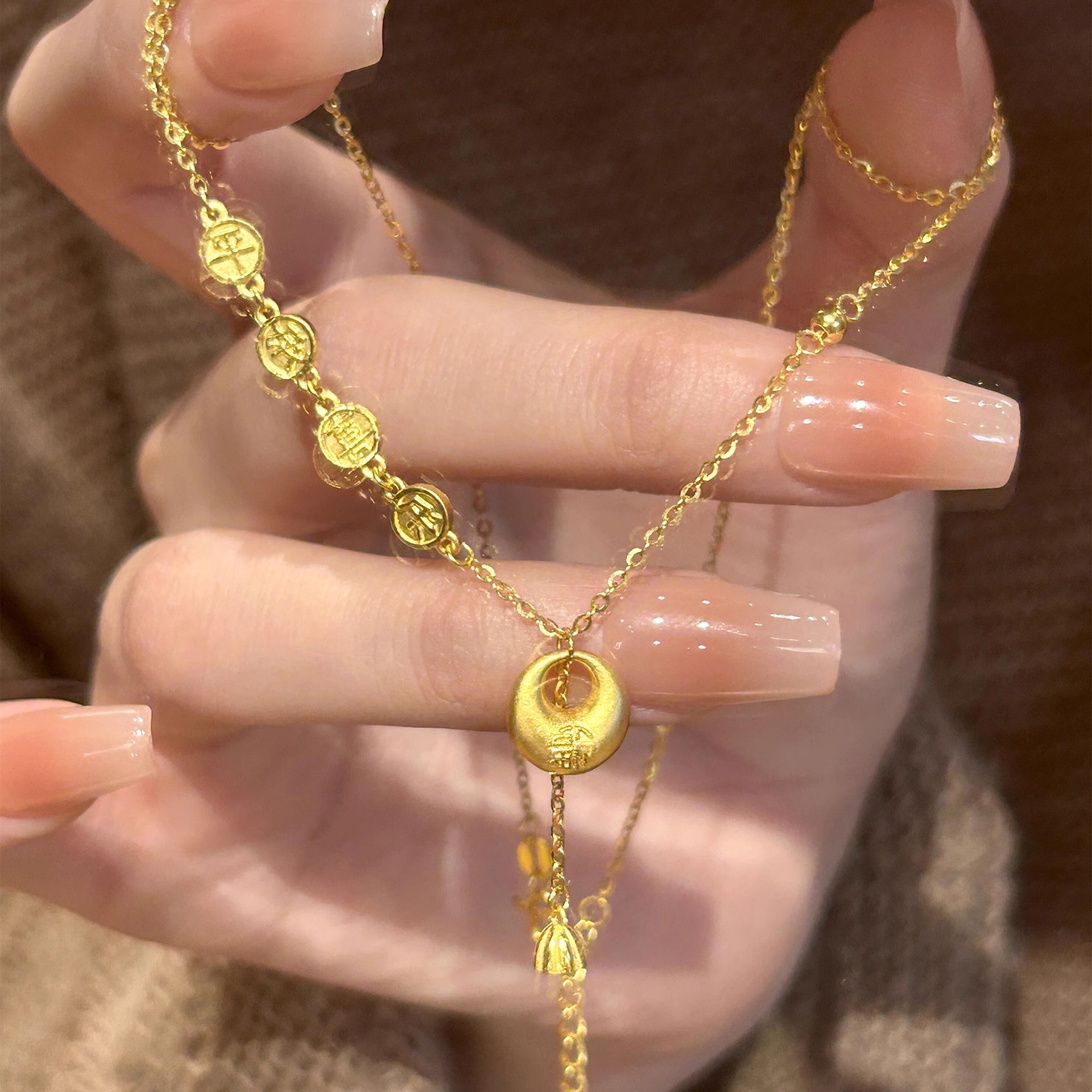 Exquisite Ancient Style Peace and Joy Chubby Fortune Necklace Jewelry Fashion Versatile Pendant Niche Light Luxury Tassel Collarbone Chain
