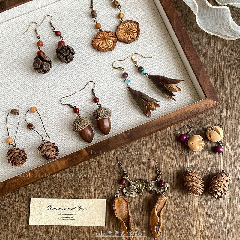 Plant Fragrance ~ Retro Natural Fruit Earrings for Women, Long Elegant, Ethnic Style Tassel Ear Hook Design Earrings