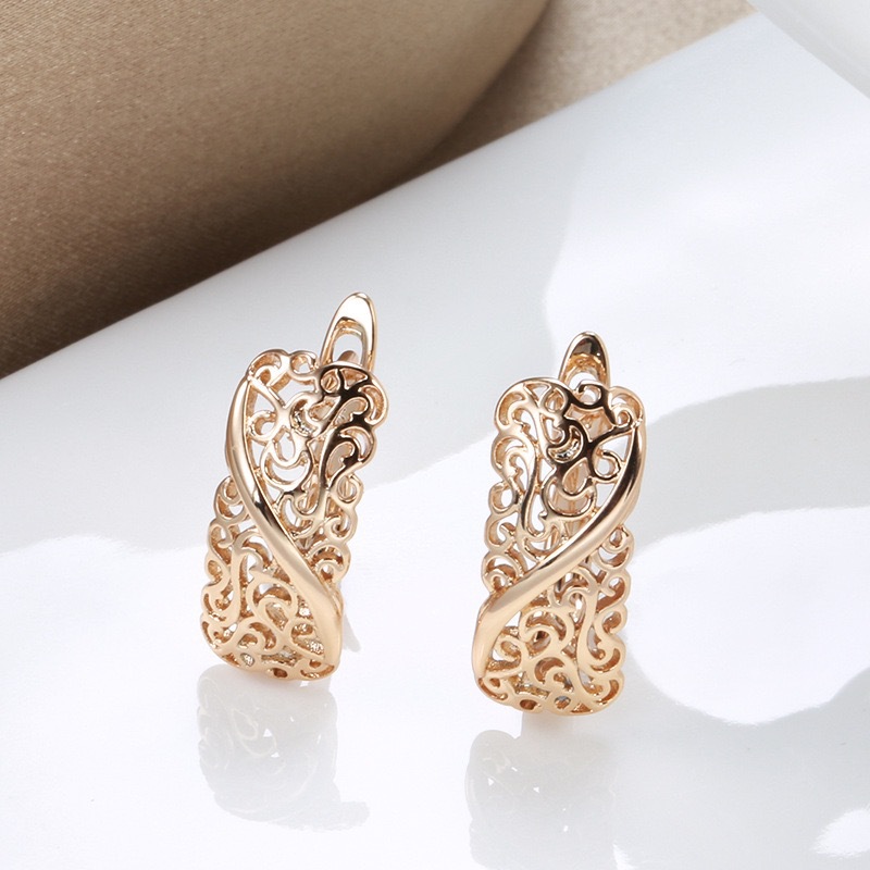 Cross-Border Champagne Gold Earrings, Earrings, Personalized Elegant, Geometric Hollow Carved Women's Earrings, Factory Direct Sales and Exquisite