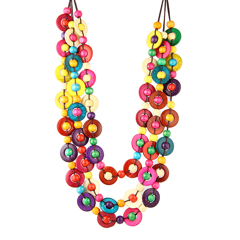 Bohemian National style necklace coconut shell pendant color multi-layer beads retro woven long necklace women