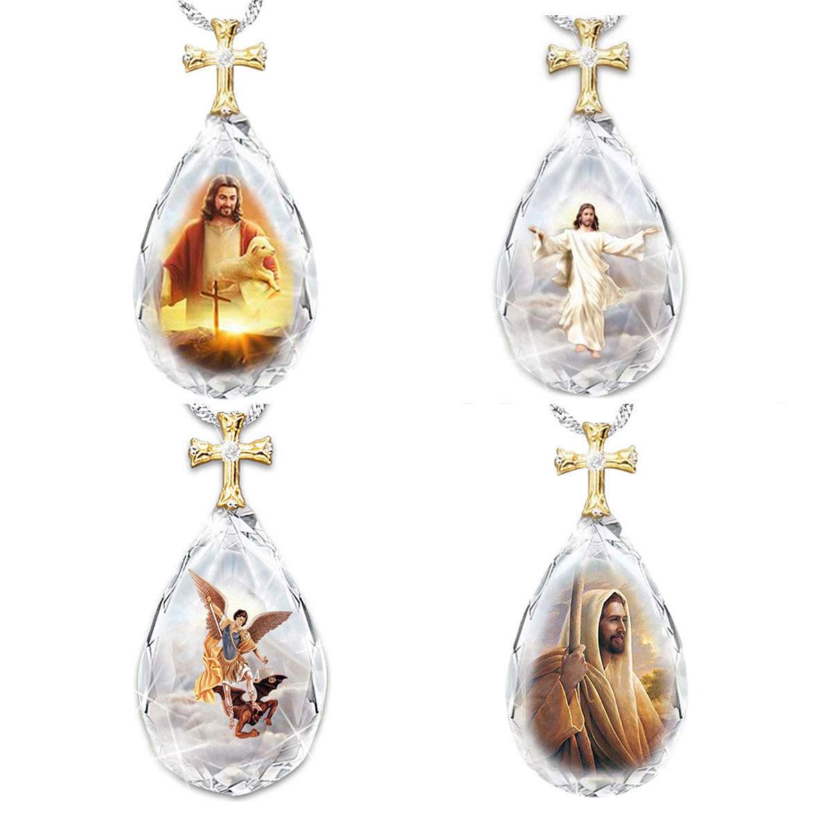 Cross-border Hot Selling European and American Retro Crystal Cross Two-tone Pendant Niche Personality Couple Wear Necklace