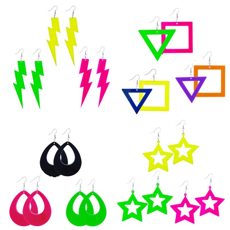 80 s prom party acrylic earrings lightning fluorescent color personality vintage earrings neon fluorescent color earrings