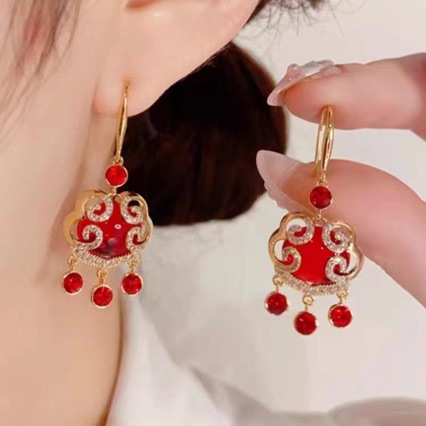 Auspicious Cloud Red Peace Longevity Lock Earrings Women's Niche Design Earrings 2023 New Ear Hook High-End Earrings